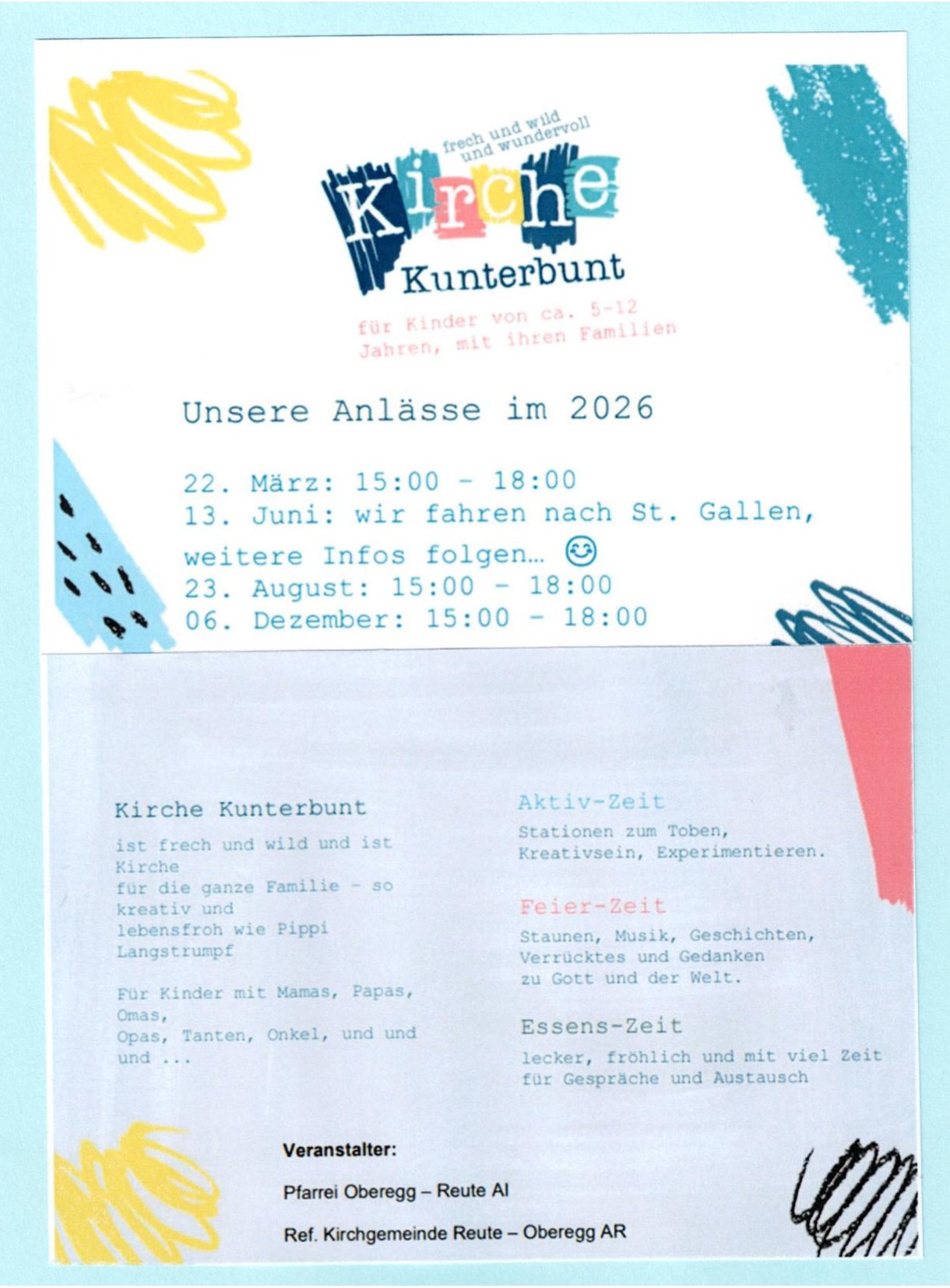 Unsere Familienarbeit versteht sich als Wegbegleiterin für Familien in allen Lebenssituationen. Wir schaffen Orte, an denen Gemeinschaft wachsen kann – bei Gottesdiensten, Familientagen, Ausflügen und Festen im Jahreskreis. Bildungs- und Gesprächsangebote unterstützen Eltern in ihrer Erziehungsaufgabe, während kreative Aktionen und spirituelle Impulse den Glauben erlebbar machen.